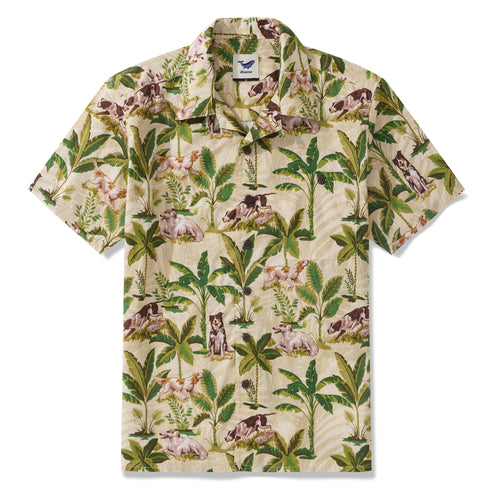 100% Cotton Hawaiian Shirt For Men International Dog Day Camp Collar Shirt